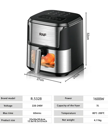With a 5L capacity, this air fryer is perfect for cooking meals for a family or hosting guests.