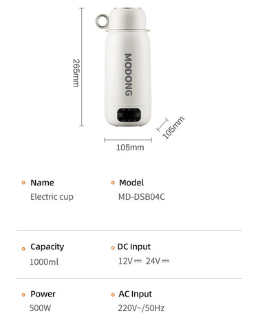 Home & Car Portable Electric Kettle 1.0L Electric Heating Cup Multifunction Boiled Water Pot Outdoors Travel Teapot 12V 24V 220V